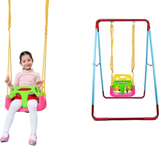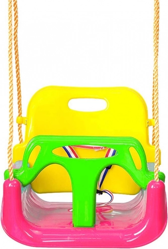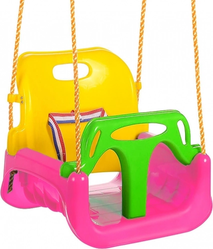 Táto univerzálna detská hojdačka 3 v 1 je navrhnutá na dlhodobé používanie – jednoducho odoberajte alebo pridávajte časti a prispôsobte ju veku dieťaťa. Vysoké operadlo, predný T-bar/zábrana a bezpečnostný postroj zaistia stabilitu a istotu pri hojdání, zatiaľ čo odolný plast a pevné laná si poradia s každodenným používaním aj vonkajšími podmienkami.