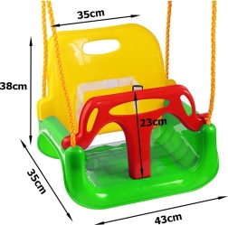 Táto záhradná vedierková hojdačka 3 v 1 je skvelou voľbou pre deti rôzneho veku. Vďaka modulárnemu systému ľahko prispôsobíte konfiguráciu aktuálnym potrebám – od plnej varianty s operadlom a prednou zábranou pre najmenších až po jednoduché sedadlo pre školákov. Robustné, farebné prevedenie láka k hre a zároveň odolá poveternostným vplyvom.