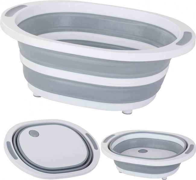 Užite si väčší komfort v malej kuchyni aj pri kempovaní. Táto skladacia miska je vyrobená z odolného plastu a silikónu, po rozložení ponúkne dostatok miesta na oplachovanie či namáčanie a po zložení na plocho poslúži ako praktická krájacia doska. Rozložíte ju behom pár sekúnd a vďaka pevnej konštrukcii s držadlami a protišmykovými nožičkami ju bezpečne prenesiete alebo usadíte do drezu.