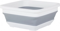 Praktická skladacia miska z odolného silikónu a plastu šetrí miesto v kuchyni aj na cestách. Vďaka objemu 6 l, stabilným výklopným nohám a kompaktnému zloženiu je ideálna do jednokomorového drezu, na umývanie riadu, ovocia a zeleniny aj do karavanu či stanu.