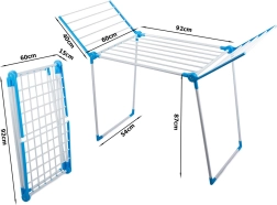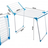Veľký sušiak na prádlo ponúka priestor pre až 13 metrov bielizne vďaka pevnej konštrukcii, ktorá je odolná voči prevráteniu. Je vybavený 2 nezávislými krídlami s 5 tyčami každé a hlavnou policou s 8 tyčami. Vďaka smaltovaným a hladkým tyčiam bielizeň nekĺže a rovnomerne sa rozkladá.