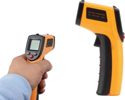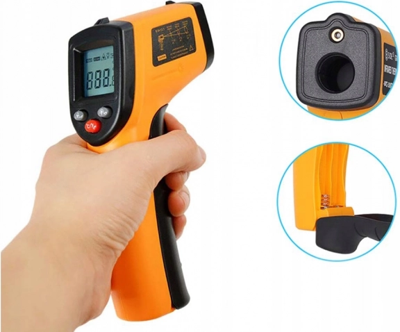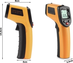 Infračervený teplomer umožňuje presné meranie teploty na ťažko prístupných miestach vďaka laserovému ukazovateľu, ktorý určuje presné miesto merania. Je vysoko univerzálny, s využitím v automobilovom, strojárenskom, stavebnom, chladiarenskom, gastronomickom a potravinárskom priemysle.