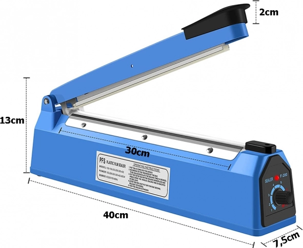 Táto oceľová ručná impulzná zváračka fólií s dĺžkou zvaru 300 mm umožňuje rýchle a čisté uzatváranie väčšiny tepelne zvárateľných materiálov. Vďaka časovej regulácii 1–8 s ľahko prispôsobíte výkon hrúbke a typu fólie pre perfektný výsledok.