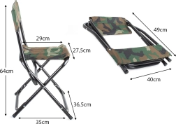 Pohodlné sedenie dopĺňa opierka chrbta a odolná textília v camo vzore pre príjemné trávenie času pri vode alebo pri ohni.