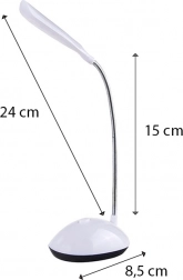 Stolná lampa LED je vybavená 4 výkonnými LED diódami, ktoré poskytujú intenzívne svetlo ideálne pre čítanie alebo prácu. Tento produkt je skvelý ako doplnok pre zníženie napätia očí pri počítačovej obrazovke. Vďaka svojej bielej, hladkej povrchovej úprave sa ľahko čistí.