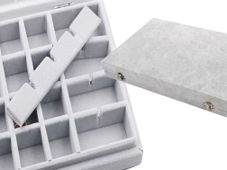 Táto kompaktná a pritom priestranná šperkovnica ponúka 24 flexibilných priehradiek na prehľadné uloženie drobných aj stredne veľkých šperkov. Mäkké semišové čalúnenie chráni povrch šperkov pred poškriabaním a odreninami, takže zostanú dlhšie ako nové.