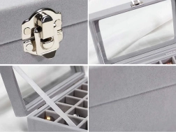 Sklenené veko umožňuje rýchlu vizuálnu kontrolu obsahu bez otvárania a zároveň je ideálne na prezentáciu šperkov v domácej vitríne, butiku či záložni. Dve spony zabezpečujú bezpečné uzavretie, takže je organizér skvelý aj na cesty.