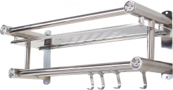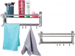 Horná odkladacia plocha na kozmetiku, dvojitá tyč na uteráky a štyri háčiky udržia vašu kúpeľňu dokonale zorganizovanú.