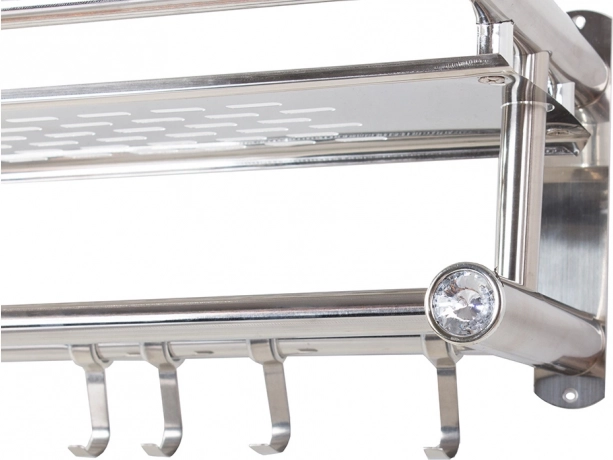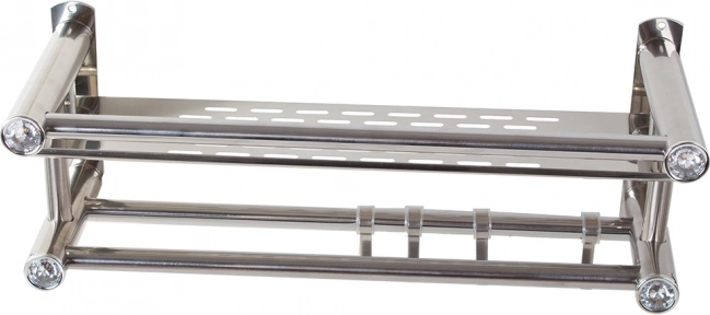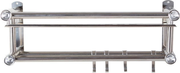 Ľahký hliník zabezpečuje odolnosť voči vlhkosti a jednoduchú údržbu. Montáž je jednoduchá a stabilná, potrebné montážne príslušenstvo je súčasťou balenia. Dekoratívne zakončenie s kryštálovými prvkami dodáva poličke decentný šmrnc.