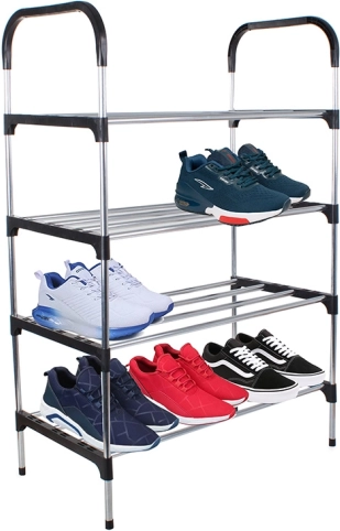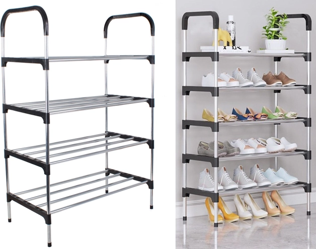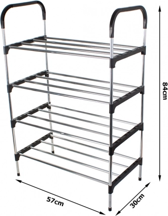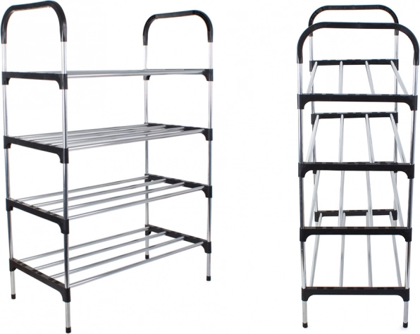 Viacúrovňový regál na topánky je navrhnutý na efektívnu organizáciu obuvi doma alebo v kancelárii. Vďaka nízkej hmotnosti a stabilnej konštrukcii je jednoducho prenosný a jednoduchý na montáž. Stojan obsahuje štyri úrovne, ktoré môžete prispôsobiť podľa svojho priestoru a potrieb.