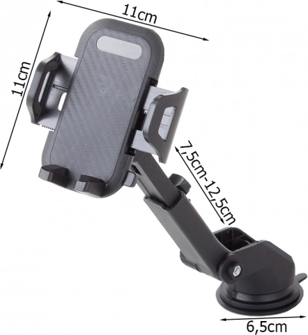 Tento nastaviteľný držiak na čelné sklo je navrhnutý na bezpečné a pohodlné používanie telefónu alebo GPS počas jazdy. Silná prísavka so zaisťovacím systémom zaručuje spoľahlivé priľnutie k čelnému sklu, zatiaľ čo mäkčené výstelky ramien pohlcujú vibrácie a chránia zariadenie pred poškriabaním.