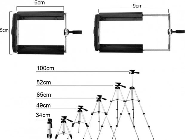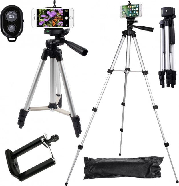 - Obsah balenia: statív, držiak na telefón, diaľkové ovládanie Bluetooth, prepravné puzdro, originálne balenie