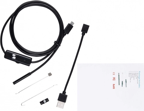Vodotesné prevedenie IP67 umožňuje prácu vo vlhkom prostredí aj krátke ponorenie. V balení nájdete háčik, magnet a zrkadlo, s ktorými ľahko vyzdvihnete drobné predmety alebo nahliadnete pod uhlom. Kamera poskytuje farebný obraz v rozlíšení 640×480 a podporuje USB 2.0 a OTG.