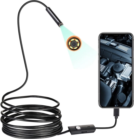 Kompaktná endoskopická kamera pre Android (OTG) aj Windows vám umožní nahliadnuť do ťažko prístupných miest. Má 5 m flexibilný kábel, kamerovú hlavu 5,5 mm a 6 LED s plynulou reguláciou jasu pre jasný obraz aj v tme. Vďaka vodotesnosti IP67 a príslušenstvu (háčik, magnet, zrkadlo) je ideálna do domácnosti, auta aj dielne.