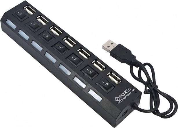 USB hub je ideálnym riešením pre pripojenie až 7 zariadení súčasne. Každý port je vybavený individuálnym prepínačom ON/OFF a modrou LED diódou, ktorá indikuje stav každého portu.
