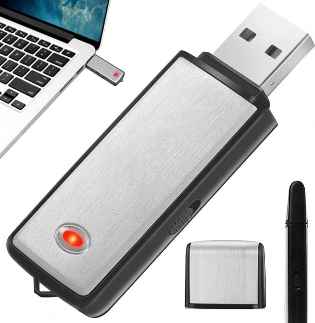 Mini špionážny diktafón USB Pendrive je nenápadné zariadenie, ktoré slúži ako bežný USB disk a zároveň umožňuje skryté nahrávanie zvuku. Stačí prepnúť posuvník do polohy "Zapnuté" a okamžite začne nahrávať.