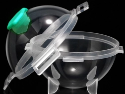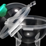 Clamshell konštrukcia so západkami a horným viečkom bráni rozliatiu vody pri prenášaní do mrazničky.