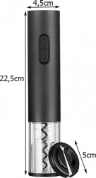Ovládanie je maximálne intuitívne: nasadíte otvárač na hrdlo, stlačíte tlačidlo a zátka je vonku. Zariadenie je napájané 4 batériami AA a je kompatibilné s väčšinou vínových zátok s priemerom 20–24 mm. V balení nájdete aj praktický rezač fólie na čisté a bezpečné odstránenie alobalu.