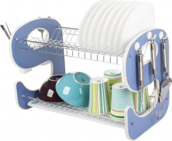 Praktický dvojposchodový odkvapkávač na riad s odkvapkávacou miskou udrží vašu kuchyňu v dokonalom poriadku. Ponúka stabilnú konštrukciu, kapacitu až na 14 tanierov, 2 úrovne sušenia pre taniere, misky a hrnčeky a závesný organizér na príbory s háčikmi na kuchynské doplnky. Kombinácia kovu a odolného plastu zabezpečuje dlhú životnosť a odolnosť voči vlhkosti.