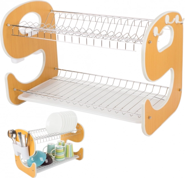 Elegantný a funkčný dvojposchodový odkvapkávač na riad s dizajnom v tvare „E“ sa stane štýlovým a praktickým pomocníkom vašej kuchyne. Odkvapkávačová miska zachytí vodu a chráni pracovnú dosku, zatiaľ čo dve úrovne efektívne sušia taniere, misky, poháre aj hrnčeky.