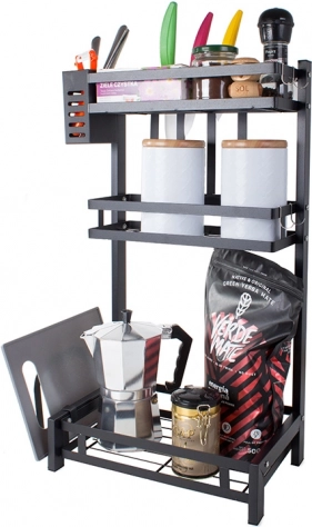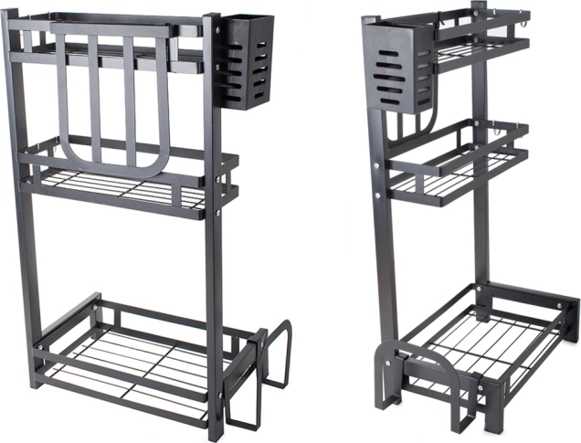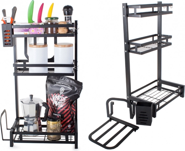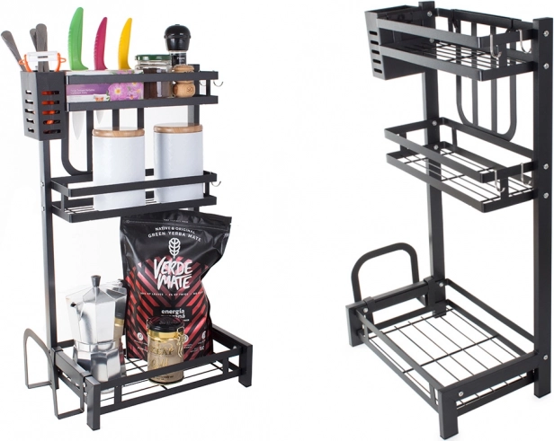 Kovový trojposchodový kuchynský organizér je nevyhnutnou pomôckou pre efektívne usporiadanie kuchyne. Vyrobený z vysoko kvalitného kovu s práškovou povrchovou úpravou, produkt je odolný proti poškodeniu a vlhkosti. Stabilná konštrukcia umožňuje umiestniť na organizér aj ťažšie predmety.