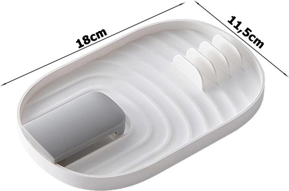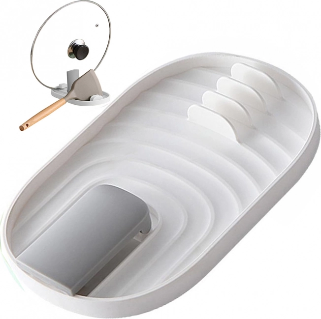 Je vyrobený z odolného plastu a ponúka miesto až pre 4 lyžice a pokrievky, čo umožňuje ľahké a organizované uloženie počas varenia. Navyše zabraňuje hromadeniu zvyškov a zabezpečuje hygienické prostredie.