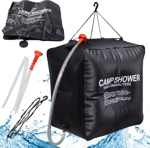 Praktická solárna kempingová sprcha s objemom 40 l zaistí teplú vodu kdekoľvek v prírode. Stačí ju naplniť a vystaviť slnku – tmavý povrch vodu rýchlo ohreje. Ideálna na kempovanie, karavan, pláž aj záhradu. Vďaka ohybnej hadici, sprchovej tryske a regulácii prietoku je používanie pohodlné a úsporné.