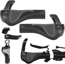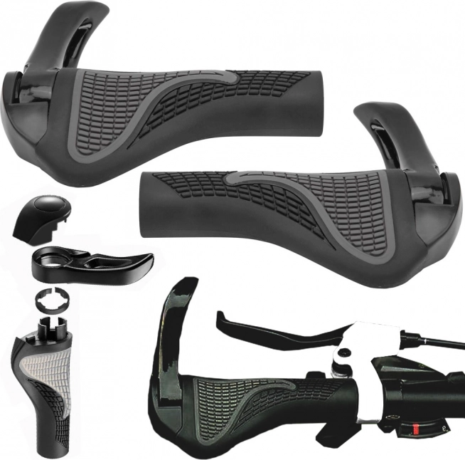 Tieto anatomicky tvarované rukoväte z protišmykovej gumy zabezpečujú komfort aj pri dlhších výjazdoch. Mäkký povrch tlmí nárazy a pomáha udržať zápästie v správnej polohe, zatiaľ čo integrované hliníkové rohy umožňujú zmenu úchopu a znižujú únavu rúk.
