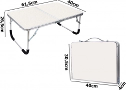 Užite si pohodlie kdekoľvek – na výlete, pod stanom, na terase aj v obývačke. Skladací prenosný stolík poskytne stabilnú plochu na jedlo, prácu aj zábavu. Je ľahký, odolný a veľmi pevný, takže sa hodí ako servírovací aj stolík pod notebook. Protišmykové koncovky zaistia stabilitu na rôznych povrchoch.