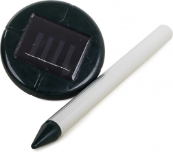 Inštalácia je rýchla: zapichnite hrot do pôdy a nechajte slnko pracovať. Pre väčšie plochy odporúčame použiť viac jednotiek s dostatočne hustým rozmiestnením. Najlepší dosah dosiahnete vo vlhkej či ílovitej pôde; v suchej a piesčitej sa účinná oblasť môže zmenšiť.