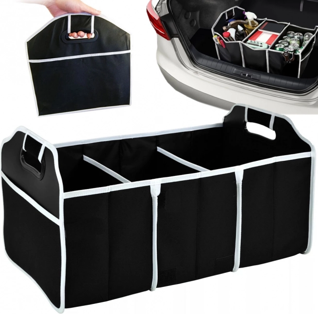 Udržte poriadok v batožinovom priestore vďaka praktickému organizéru s 3 priestrannými priehradkami a 4 vreckami. Ľahký a odolný materiál zaisťuje dlhú životnosť, pevné uši pohodlné prenášanie a skladacia konštrukcia šetrí miesto, keď práve nie je potrebná.
