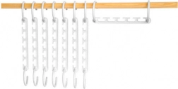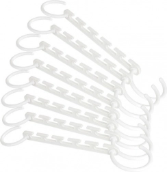Je vyrobený v bielej farbe, ktorá ľahko zapadne do interiéru každej šatníkovej skrine, a jeho kompaktné rozmery zaisťujú nenápadné začlenenie. Balenie obsahuje osem kusov organizérov, čo umožňuje usporiadanie väčšieho množstva oblečenia.