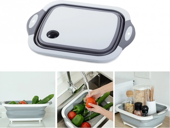 Objavte výhody dvojfunkčného silikónového odkvapkávača, ktorý sa v okamihu premení na dosku na krájanie. Skladací dizajn umožňuje jednoduché skladovanie a maximálnu praktickosť.