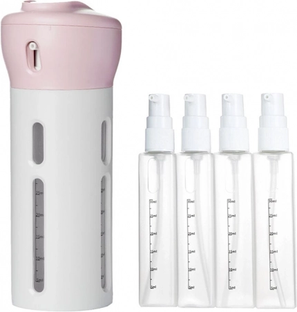 Udržte svoju tekutú kozmetiku prehľadne na jednom mieste. Organizér ukrýva štyri znovu plniteľné fľaštičky s dávkovačmi, ideálne na šampón, sprchový gél, pleťové mlieko či krémy. Kompaktné rozmery a odolné plastové prevedenie zaručia pohodlné cestovanie bez zbytočného neporiadku.