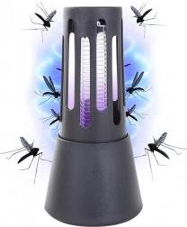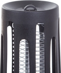 Modrofialové UV svetlo priťahuje komáre a muchy, ktoré sú následne zneškodnené na živej mriežke. Rýchle, efektívne a bez chemikálií.