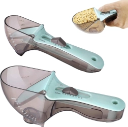 Praktická sada dvoch nastaviteľných odmeriek na presné meranie tekutých aj sypkých surovín. Vďaka posuvnému mechanizmu ľahko nastavíte požadovaný objem, čo šetrí miesto aj čas pri varení a pečení. Odmerky majú čitateľné stupnice v ml, lyžičkách, lyžiciach a šálkach, pohodlnú ergonomickú rukoväť a jednoducho sa čistia. Ideálny pomocník do každej kuchyne.