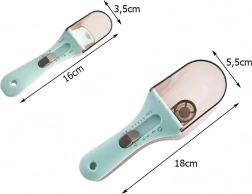 Menšia od 5–30 ml (1/2–3 lyžičky, 1–2 lyžice) a väčšia od 30–130 ml (2–9 lyžičiek, 1/8–1/2 šálky). Jednoduché a presné dávkovanie korenia aj surovín do cesta.