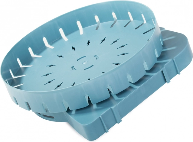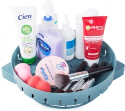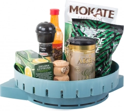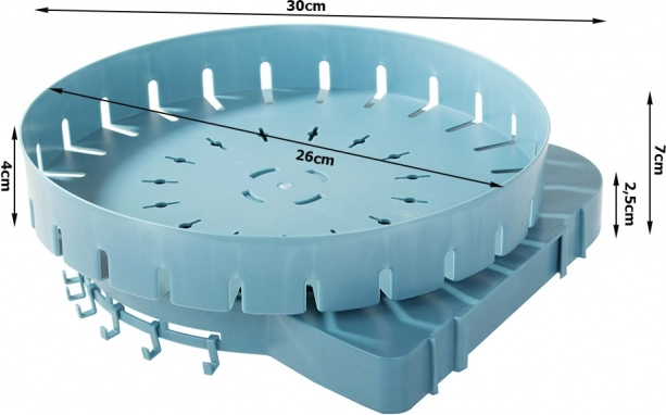 S pracovnými rozmermi 26 cm v priemere a celkovou výškou 7 cm, tento organizér ponúka moderné riešenie skladovacích potrieb s možnosťou zakúpenia v dvoch farbách: modrá a žltá.