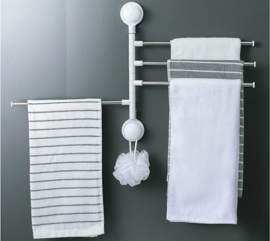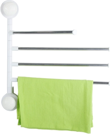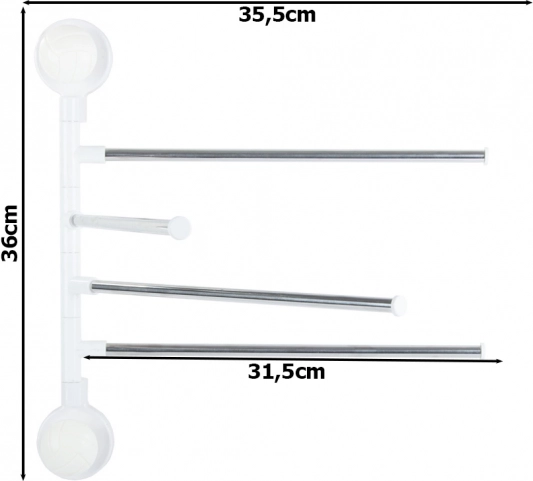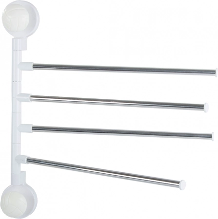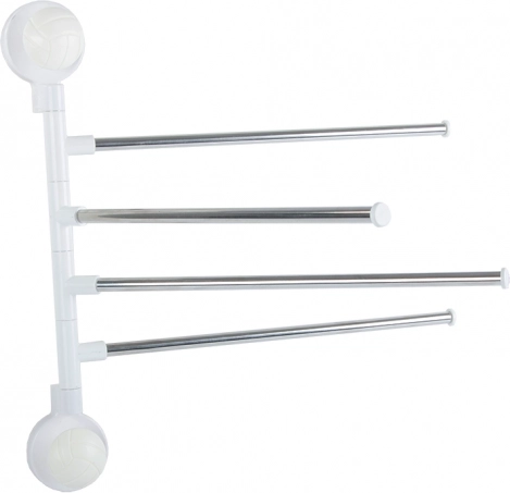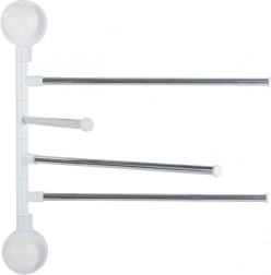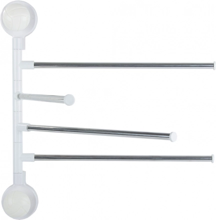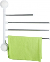 Praktický nástenný držiak na uteráky so štyrmi výklopnými ramenami zaistí, že vaše uteráky budú vždy po ruke a rýchlo uschnú. Každé rameno možno samostatne otočiť, takže medzi uterákmi cirkuluje vzduch a nevzniká zbytočný neporiadok. Minimalistická kombinácia kovových tyčí a bielej plastovej základne skvele zapadne do moderných aj klasických kúpeľní.