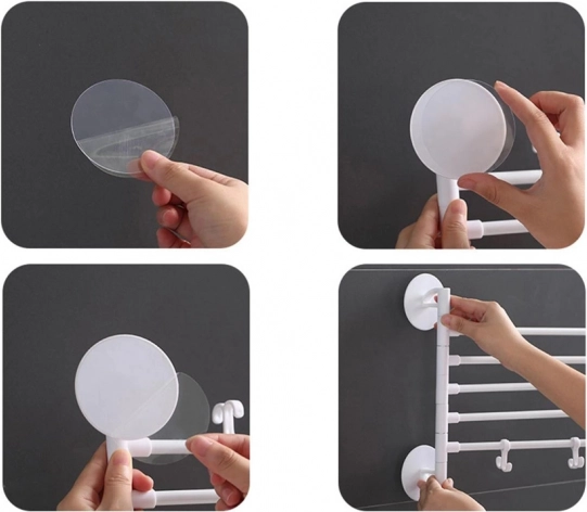 Inštalácia je rýchla a bez vŕtania – vďaka priloženým silným samolepkám držiak pevne priľne k hladkým povrchom, ako sú obklady. Ideálne riešenie pre menšie priestory, kde sa ráta každý centimeter.