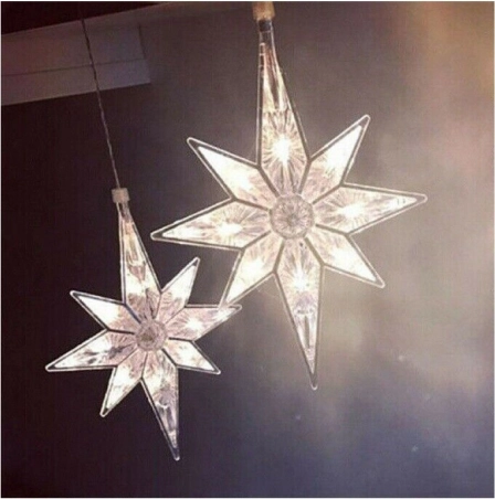 Obsahuje veľké a malé hviezdy, ktoré dodávajú celkovo elegantný vzhľad, ideálny pre vianočnú výzdobu.