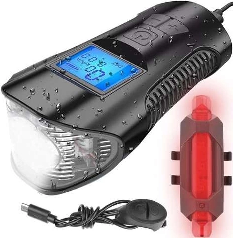 Predné LED svetlo na bicykel s počítadlom – So zadným svetlom