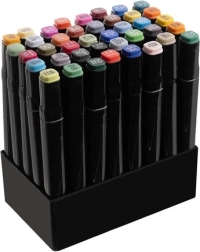 Obojstranné markery vám dajú slobodu tvoriť aj efektívne pracovať: okrúhly hrot je ideálny na písanie, skicovanie a kontúry, zatiaľ čo skosený hrot rýchlo zvýrazní kľúčové pasáže alebo vyplní plochy. S paletou 40 výrazných odtieňov ľahko zladíte poznámky, farebné kódovanie aj umelecké projekty.