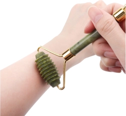 Nefritový valček je obľúbená pomôcka na domácu starostlivosť o pleť. Pravidelná masáž napomáha lymfatickej drenáži, zlepšuje prekrvenie a prináša pleti zdravý jas. Väčší valček je ideálny na čelo, líca, bradu a krk, menšiu časť oceníte okolo očí, nosa a úst. Pre zvýšenie osviežujúceho efektu možno valček pred použitím krátko vychladiť v chladničke.