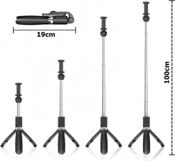 Vysoko kvalitné materiály zaručujú trvanlivosť a bezpečnosť vašich zariadení. Vďaka univerzálnemu držiaku, sa selfie tyč prispôsobí akémukoľvek telefónu.