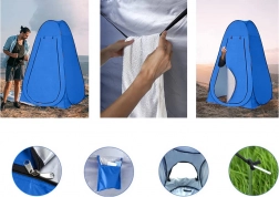 Užite si pohodlie a súkromie, nech ste kdekoľvek – na pláži, pri vode alebo v kempe. Tento samoskladací stan sa v okamihu rozloží a ponúkne kryté zázemie na prezliekanie, sprchovanie či použitie prenosnej toalety. Vďaka vodoodolnému materiálu a odolnej konštrukcii obstojí aj v horšom počasí, zároveň sa ľahko čistí a odpudzuje nečistoty.