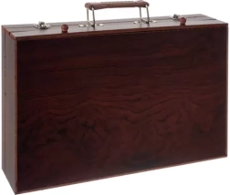 Vďaka praktickému drevenému kufríku so rúčkou a bezpečným uzáverom je prenášanie tejto sady ľahké a pohodlné. Cez dobre organizované priehradky budete mať vždy jednoduchý prístup k jednotlivým pomôckam, ktoré zostanú v poriadku a vždy prehľadne usporiadané.