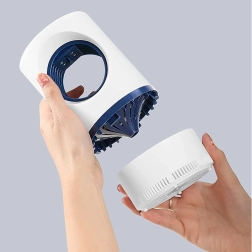 Odnímateľná zberná nádoba umožňuje rýchle a hygienické čistenie bez priameho kontaktu s hmyzom. USB napájanie poskytuje flexibilitu umiestnenia – stačí powerbanka, adaptér alebo USB port. Elegantný dizajn v bielej a tmavomodrej farbe sa hodí do každého interiéru.