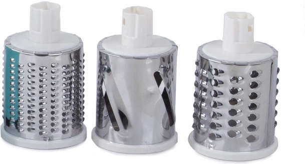 Krájač umožňuje jednoduchú prípravu rôznych pokrmov vďaka trom vymeniteľným bubnom, ktoré prispôsobíte potrebám vášho receptu.