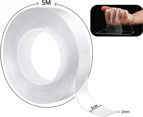Obojstranná priehľadná páska sa veľmi ľahko nanáša. Stačí jemne očistiť povrch, na ktorý má byť aplikovaná, a pásku pritlačiť. Ľahko ju možno odlepiť a po umytí použiť znovu, bez toho aby zanechala zvyšky. Využijete ju na zavesenie obrázkov, rozličného kuchynského náradia i pre upevnenie káblov, líšt alebo kobercov.